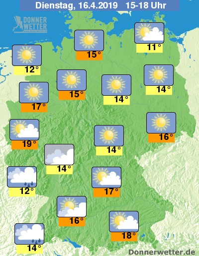 Die Temperaturen bewegen sich zwischen 11 Grad an den Küsten von Nord- und Ostsee, sowie 18 Grad im Süden.