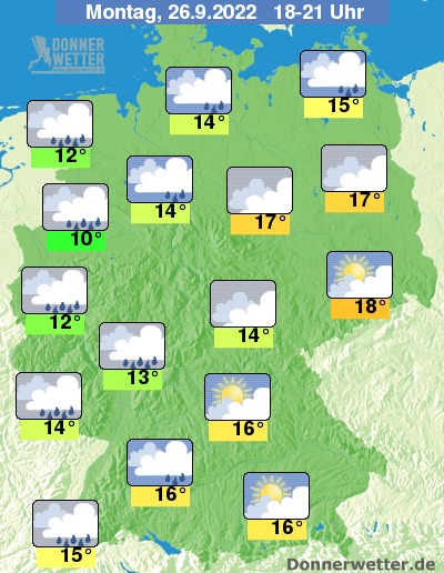 Heute Abend zieht es sich auch im Osten und Süden immer mehr zu, es bleibt aber überwiegend trocken. Im übrigen Land fällt bei dichter Bewölkung zeitweise Regen. In den westlichen Landesteilen bilden sich vielerorts auch kräftige Schauer. Die Temperatur liegt bei 10 Grad in Münster und bis 18 Grad in Dresden.