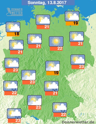 Am Sonntag kann sich die Sonne endlich wieder für längere Zeiten durchsetzen und neben meist lockeren Wolken bleibt es über der Nordhälfte dazu auch weitgehend trocken. Im Süden ist es neben aufgelockerter Bewölkung auch teils stark bewölkt und es können sich einzelne Schauer bilden. Die Temperatur erreicht etwa 18 Grad an der Nordsee und bis 23 Grad in Köln und Dresden.