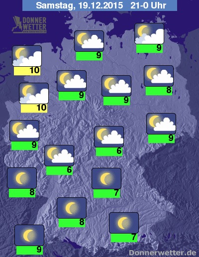 Heute Abend ist der Himmel im Süden der Republik sternenklar. Im Norden und Nordwesten ist es meist aufgelockert bis stark bewölkt, sonst jedoch zum Großteil nur locker bewölkt. Es bleibt landesweit trocken bei Abendtemperaturen von 10 Grad im Emsland und etwa 6 Grad im Vogtland.