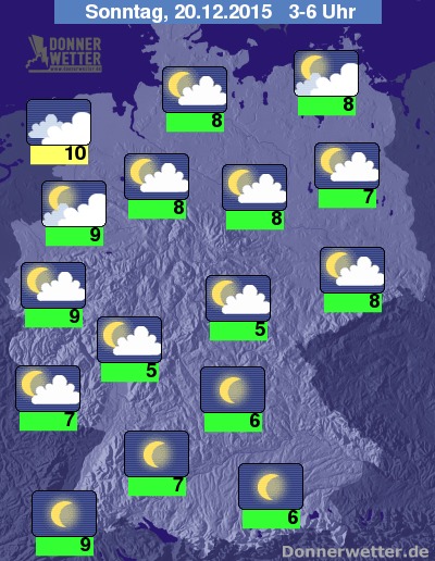 In der Nacht zum Sonntag bleibt es im Süden weitgehend sternenklar. Im großen Rest der Republik ziehen mal mehr mal weniger Wolken durch. Vor allem an der Nordsee ist die Wolkendecke auch oft verschlossen. Es bleibt bundesweit trocken bei Tiefstwerten von 10 Grad an der Nordsee und um 5 Grad am Westerwald.