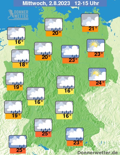 Heute Abend kann sich vor allem nach Westen hin häufiger die Sonne blicken lassen, jedoch ziehen auch weiterhin vielerorts kompakte Wolken durch und es bilden sich einzelne Schauer, örtlich auch Gewitter. Die Temperatur liegt bei 17 Grad in Jena und 27 Grad in München.