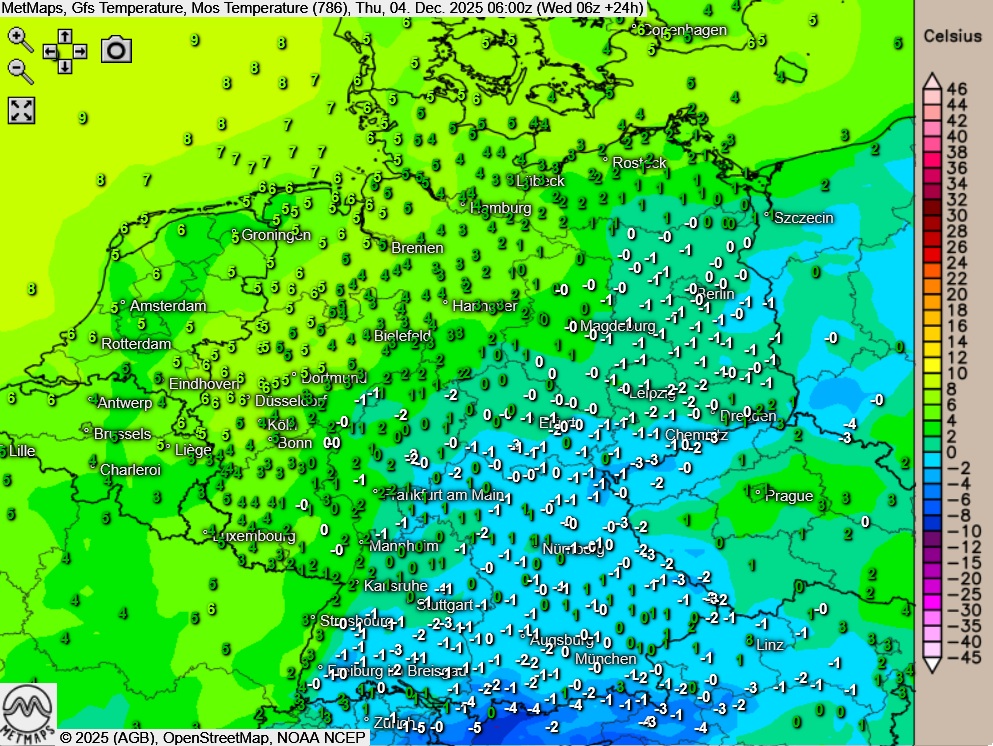 Höchstwerte am Donnerstag um 0 bis 9 Grad.