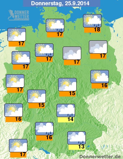 Für den heutigen Donnerstag erwarten wir verbreitet nur wenig Sonnenschein, stattdessen ziehen immer wieder mehr oder weniger dichte Wolken über uns hinweg. Zwischendurch kann sich aber auch die Sonne mal zeigen. Jedoch ist auch gebietsweise etwas Regen möglich, zumeist bleibt es aber trocken. Die Temperatur steigt auf 13 Grad im Allgäu und etwa 18 Grad in Rostock.