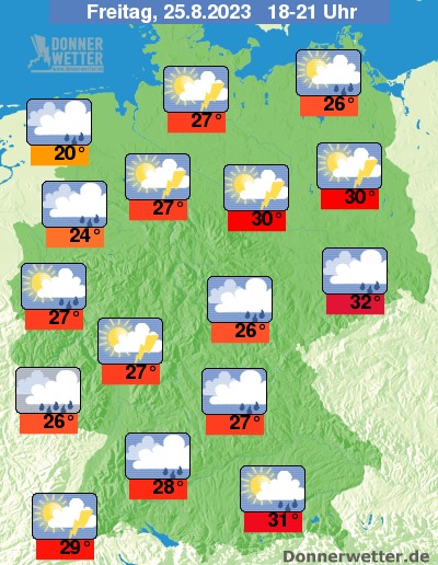 Die Temperaturen liegen zunächst noch bei Werten um 20 bis 32 Grad.
