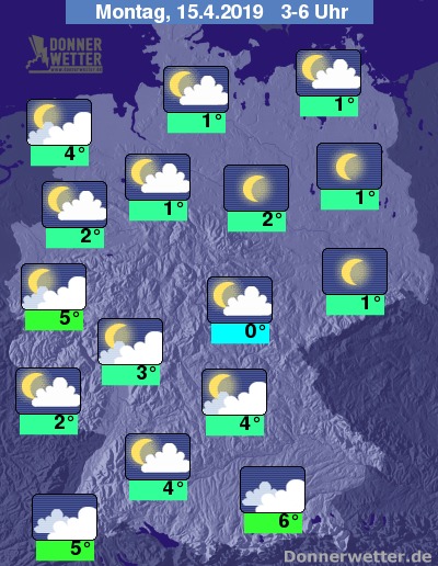 In der Nacht zum Montag fällt anfangs bei oft noch starker Bewölkung hier und da noch Regen, der jedoch bereits in der ersten Nachthälfte weitgehend abklingt. Die Bewölkung lockert vor allem in der zweiten Nachthälfte mehr und mehr auf und gegen Morgen ist es dann verbreitet nur noch locker bewölkt oder sternenklar.