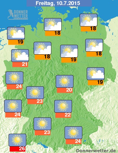 Am Freitag ziehen über den Norden und Osten Deutschlands oft dichte und sonst meist aufgelockerte Wolken, gebietsweise kann sich aber auch längere Zeit die Sonne zeigen. Meist sehr sonnig bei nur seltenen Wolken zeigt sich dagegen der Süden und auch meist die breite Landesmitte. Es bleibt überall trocken und die Temperatur steigt auf 18 Grad in Rostock und auf sommerliche 26 Grad in Freiburg.