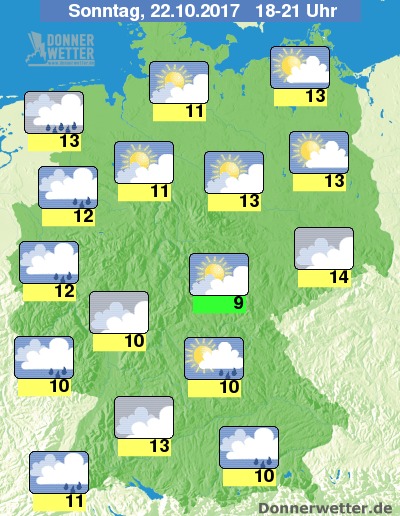 Heute Abend ist es über dem Norden und Osten meist locker bis aufgelockert, hier und da auch stark bewölkt, dazu bleibt es weitgehend trocken. Im übrigen Land ist es größtenteils stark, gebietsweise auch aufgelockert bewölkt und es können sich wiederholt Schauer bilden. Die Temperatur liegt bei 9 Grad im Thüringer Becken und etwa 14 Grad in Dresden.