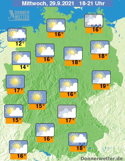 Am Donnerstag ist es zunächst vor allem über der Südosthälfte des Landes noch lange heiter bis sonnig. Im weiteren Verlauf ziehen von Nordwesten her jedoch zunehmend Wolken heran, die nachfolgend zuerst im Nordwesten, abends auch im Norden und Westen Regen bringen. Die Höchstwerte erreichen 12 Grad an der Nordsee und bis 17 Grad im Breisgau.
