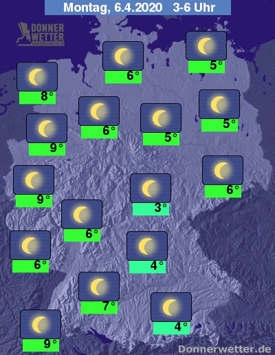 In der kommenden Nacht zeigt sich der Himmel über Deutschland sternenklar, dazu bleibt es trocken. Die Temperatur sinkt auf 9 Grad in Düsseldorf und bis 3 Grad in Erfurt.