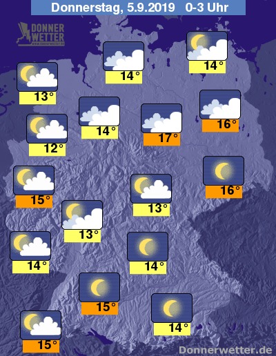In der Nacht zeigt sich der Himmel über weiten Landesteilen locker oder aufgelockert bewölkt, entlang und östlich der Weser ist es teils auch bedeckt. In der Osthälfte sowie an der Nordseeküste muss zeitweise mit Schauern gerechnet werden, sonst bleibt es überwiegend trocken.