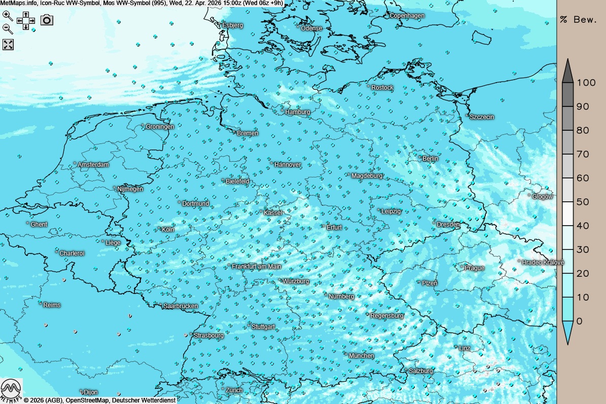 Die Wetterkarte für 15:00 Uhr nach ICON-RUC: