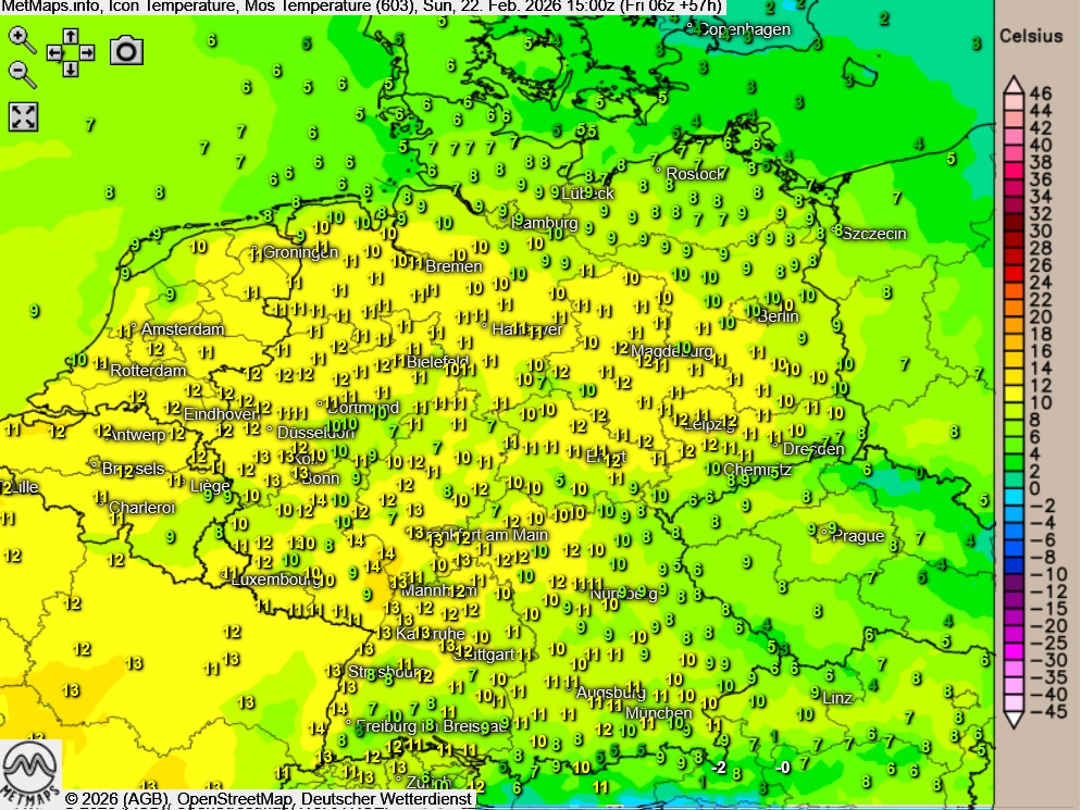 Die Temperaturen erreichen Höchstwerte um 9 bis 14 Grad.