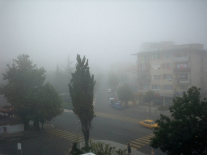 Dichter Nebel in den Straßen von Nessebar/Bulgarien. Es ist schwierig eine Vorhersage zu erstellen.