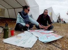 ![]() | | „Man kann auch von unten etwas bewegen!“ Zum diesjährigen Klimacamp im Rheinland treffen sich tausende Menschen, um über Klimagerechtigkeit, die Zukunft des rheinischen Braunkohlereviers und 'System-Chance' zu sprechen. |