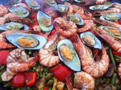 Her mit Olivenöl, Nüssen und Garnelen