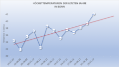 Die Höchsttemperaturen der letzten Jahre in Bonn zeigen einen klaren Trend: Es geht steil nach oben!