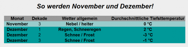 Die Detailaussichten für den Restnovember und Dezember - die Aussichten für Januar und Februar finden Sie auf der nächsten Seite.