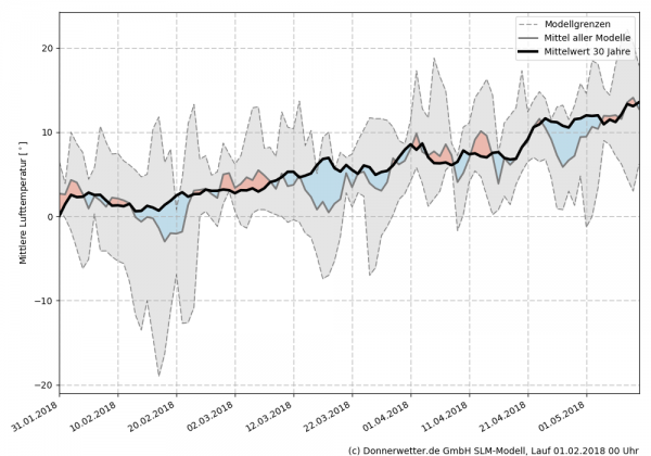Mal leicht über dem langjährigen Mittel, mal leicht darunter - so berechnen die Langfristmodelle aktuell die kommenden Wochen bezüglich Mitteltemperaturen und Niederschlagssummen im Süden des Landes. Eine längere Sonnenphasen deutet sich nach neuesten Berechnungen dann wieder für die letzte Februardekade an.