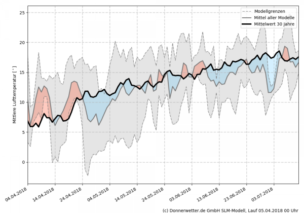 Unsere aktuellen Langfristprognosen für Lufttemperatur, Sonnenscheindauer und Niederschlagshöhe.
