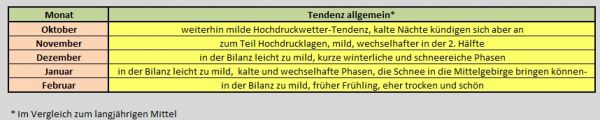 Doch nicht nur der bisherige Herbst zeigte sich mild - auch die kommenden Monate weisen, laut unserer ersten Modellberechnungen, auf durchweg milde Monatsbilanzen hin. Zwar müssen wir vor allem im Dezember und Januar auch kurze, winterliche Phasen einplanen, dafür könnte der kommende Frühling allerdings ein "Schnellstarter" sein!