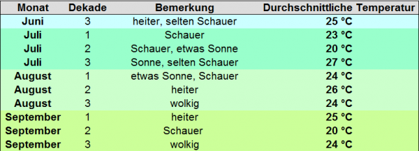 on seiner feuchten Seite zeigt sich vor allem der Juli. Ebenfalls auffällig: Nach aktuellem Stand der Langfristmodelle bleiben lange und extreme Hitzephasen, wie wir sie etwa im letzten Sommer hatten (am 5. Juli 2015 etwa stieg das Thermometer regional auf über 40 Grad, hier nochmals der Wetterbericht) in diesem Jahr aus.