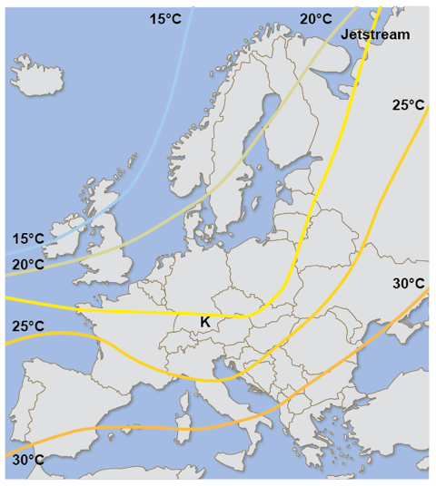 Verantwortlich dafür ist der Jetstream, das Starkwindband der mittleren Breiten, welches im Juli über Mitteleuropa liegt.