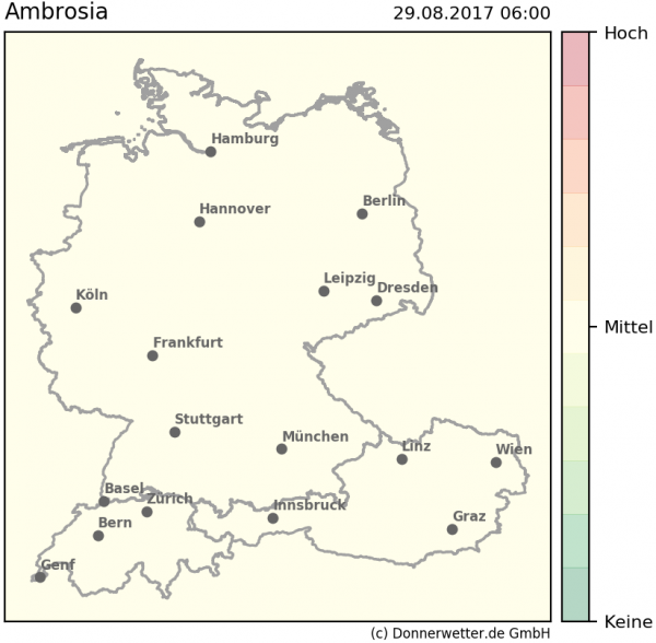 Die beste Nachricht vorweg: Die Angstpolle Ambrosia tauchte in diesem Jahr bislang nicht nennenswert in unserer Atemluft auf. Das wechselhafte Wetter dieser Tage hat also auch etwas Gutes.