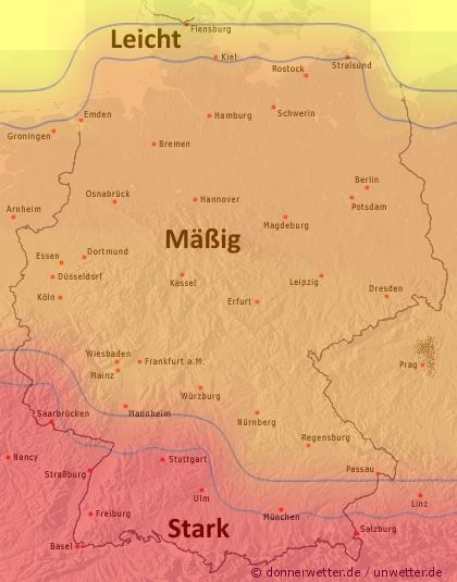 Die Karte zeigt den durchschnittlich in Deutschland zu erwartenden Birkenpollenflug bis zum 20.04.2017: