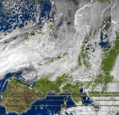 Breites Regenband über Europa