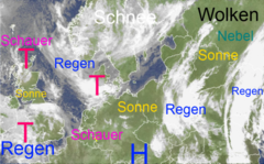 Mehrere Wolken und Niederschlagszonen