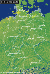 ![]() | | Radarbild 08.04.2020 Meist wolkenloser Himmel und strahlender Sonnenschein |