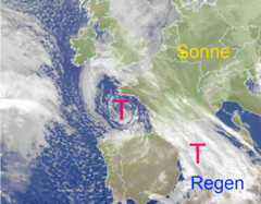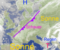 Frontensystem mit Regenwolken auf dem Weg nach Deutschland