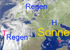 Regenwolken formieren sich über Südwesteuropa