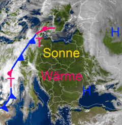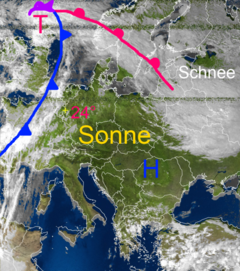 ![]() | | Kaltfront über Benelux 31.03.2017 Regengüsse von Westen vertreiben am Wochenende die Wärme in Deutschland |