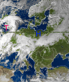 ![]() | | Satellitenbild 21.03.2017 Kaltfront überquert Deutschland |