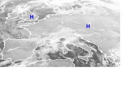 Über Norditalien und den Alpen, sowie über Skandinavien kann leichter Tiefdruckeinfluss noch für dichte Wolken und etwas Schnee oder Regen sorgen, sonst bleibt es unter Hochdruckeinfluss teils heiter, teils auch trüb, aber größtenteils trocken. Dazu ist es kalt. (Bildquelle: NERC Satellite Receiving Station, Dundee University, Scotland, http://www.sat.dundee.ac.uk/)