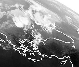 Am Schwarzen Meer hat sich ein kleines Gewittertief gebildet, so dass es im nördlichen Bereich zu teils kräftigen Gewittern kommt. Während die Gewitter in Rümänien und Bulgarien für teilweise Abkühlung sorgen, dauert die Hitzewelle südlich davon weiter an. (Bildquelle: NERC Satellite Receiving Station, Dundee University, Scotland, http://www.sat.dundee.ac.uk/)