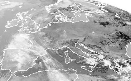 Ein schwacher Tiefausläufer bringt vor allem in Westfrankreich und Spanien Wolken mit Schauern oder Gewittern, und auch über Süditalien und Griechenland sind einige Gewitterzellen zu erkennen. Sonst ist es auf dem Satellitenbild von Donnerstag früh über Mitteleuropa fast wolkenfrei. (Bildquelle: NERC Satellite Receiving Station, Dundee University, Scotland, http://www.sat.dundee.ac.uk/)