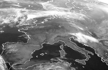Im Norden und Osten Europas beeinflusst das Tief 'Heijo' mit seinem Zentrum über Nordwestrussland auch weiterhin das Wetter. Auf dem Sattelitenbild vom Freitagmorgen erstreckt sich seine Kaltfront von Polen über Dänemark bis nach England und sorgt hier für Regen. Dahinter strömt feuchte und kühlere Luft in die Regionen. Im Süden und Südwesten sorgt Hoch 'Georgia' mit seinem Kern über Frankreich für wolkenarmen Himmel.