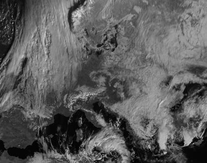 Weite Teile Europas liegen unter dem Einfluss von Hoch 'Heike' mit Zentrum über dem Südural. In Mittel-, Ost- und Nordosteuropa sowie in Skandinavien ist es verbreitet sonnig. Deutlich sind die verschneiten Berge des Skandinavischen Gebirges und der Alpen auf dem Satellitenbild zu erkennen. In West- und Nordwesteuropa sorgt Tief 'Sigurd' für dichte Wolken und Regen. Auch über dem Mittelmeer und dem Balkan sorgt Tiefdruckeinfluss für dichte Wolken und Regen. Auf der Iberischen Halbinsel ist es unter Hochdruckeinfluss wiederum freundlich.