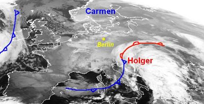 Über Mittel-, Südost- und Osteuropa halten sich viele Wolken, sie gehören einem Tiefdrucksystem mit Zentrum über Italien und der Adria. Das Frontensystem des Tiefs überquert heute die Alpenländer, Polen und Tschechien mit kräftigen Schneefällen, am Donnerstag werden in Ost- und Norddeutschland sowie in Dänemark und Südschweden teils unwetterartige Schneefälle und Schneeverwehungen erwartet. Über Irland sind Wolken eines neuen Atlantiktiefs zu erkennen, im Laufe der Woche greift das Tief ins Wettergeschehen in Mittel- und Westeuropa ein mit weiteren Niederschlägen und stürmischem Wind. Unter Hochdruckeinfluss bleibt Nordskandinavien, auch in England gibt es heute noch ruhiges, oft aber trübes Wetter.
