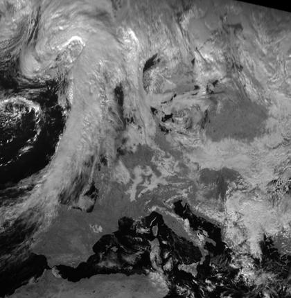 Auf dem Satellitenbild vom Freitagmittag erkennt man über Mitteleuropa noch einige flache, aber dichte Wolkenfelder. Unter dem zunehmendem Hochdruckeinfluss lösen sie sich jedoch immer mehr auf. Über dem Atlantik, den Britischen Inseln und bis zur Nordwestspitze Spaniens erstreckt sich das Wolkenband des Ausläufers eines Tiefs bei Island. Diese Wolken kommen jedoch nur langsam ostwärts voran.