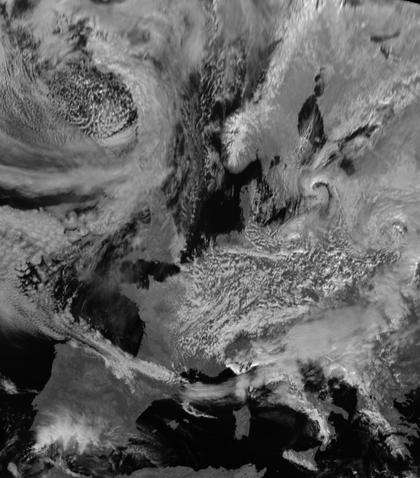 Von Norden strömt kalte Luft nach Deutschland. Man erkennt auf dem Satellitenbild, wie sich dabei zahlreiche Schauerwolken bilden konnten. Auf dem Atlantik, nordwestlich von Schottland, liegt der Tiefdruckwirbel 'Ingolf', dessen Wolken am Mittwoch von Westen nach Deutschland ziehen.