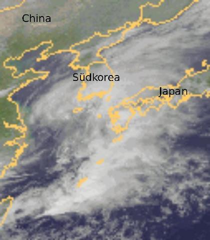 Ein kräftiges Tief liegt mit seinen Wolken heute im Ostchinesischen Meer. Es sorgt für kräftigen Regen über dem Süden von Südkorea und im Südwesten von Japan. Regenmenge von über 50 Liter/Stunde sind durchaus möglich, vor allem über Japan. Zudem ist es sehr windig. Das Tief zieht bis Mittwoch über Japan hinweg und sorgt dabei weiterhin für teils heftige Niederschläge und viel Wind.