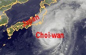 Auf dem heutigen Satellitenbild ist der Taifun 'Choi-wan' südöstlich von Japan zu sehen. In seinem Zentrum werden noch maximale Windböen um 160 km/h erreicht, im Mittel werden noch Windgeschwindigkeiten um 130 km/h gemessen. Somit hat sich der Taifun auf die niedrigste Kategorie 1 abgeschwächt. Im weiteren Verlauf zieht 'Choi-wan' weiter nach Nordosten und wird sich in der kommenden Nacht zu einem Tropensturm abschwächen.