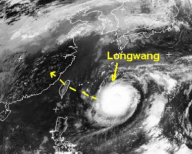 Der Taifun 'Longwang' überquert morgen mit Windgeschwindigkeiten von 220 km/h, in Böen bis zu 300 km/h Taiwan von Ost nach West und erreicht am Sonntag die Südostküste Chinas in der Nähe von Fuzhou.