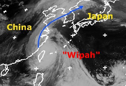 Der Taifun 'Wipha' liegt am Donnerstag morgen genau über Taiwan. Hier kommt es neben dem mittleren Wind von 240 km/h und Böen von fast 300 km/h auch zu teils heftigen Regenfällen. 'Wipha' zieht nun auf das chinesische Festland und dann auf die koreanische Halbinsel zu. Wegen des fehlenden Feuchteangebots und der Reibung über Land wird er sich dabei aber deutlich abschwächen. (Bildquelle: NERC Satellite Receiving Station, Dundee University, Scotland, http://www.sat.dundee.ac.uk/)