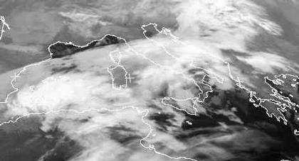 Der Ausschnitt zeigt das Tief 'Claus' über dem Dinarischen Gebirge, Wolken seines Frontensystems erstrecken sich vom Adriatischen Meer über Italien bis zum Gibraltar. Heute und morgen bringt das Tiefs kräftige Schauer von Süditalien bis zum Schwarzen Meer. Mit einer Wetterberuhigung ist in der Region noch nicht zu rechnen; durch die hohe Labilität entwickeln sich in den nächsten Tagen immer wieder Schauer.