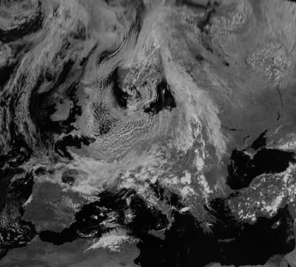 Tief 'Friederike' mit Zentrum über Dänemark sorgt für teils dichte Wolken in Mitteleuropa. Osteuropa ist unter Hochdruckeinfluss wolkenarm.